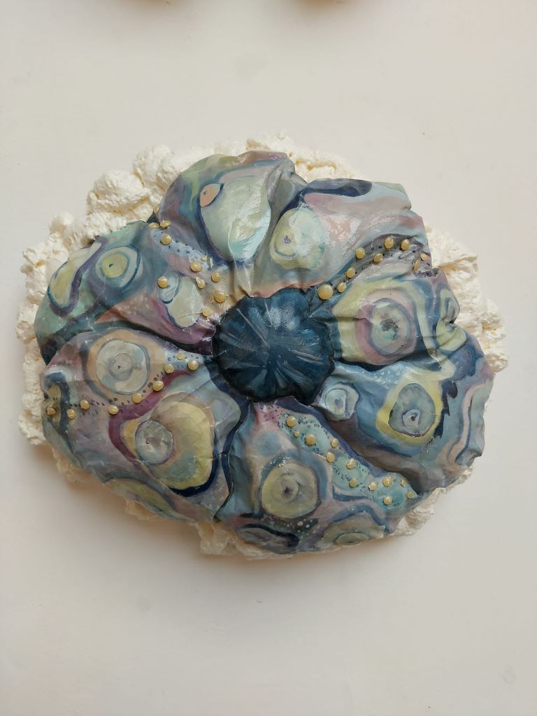 Fruto de uma investigação sobre a relação entre pintura, escultura e instalação, as obras apresentadas são pinturas-objeto, formas volumosas que evocam organismos vivos e elementos naturais como corais, algas e troncos de árvores. Criadas a partir de espumas, costuras e preenchimentos têxteis, essas peças transformam a materialidade da pintura, conferindo-lhe textura, volume e presença. O espectador é convidado a uma experiência que vai além do olhar, onde a pintura se torna algo que pode ser percebido pelo toque e pela imersão no espaço.